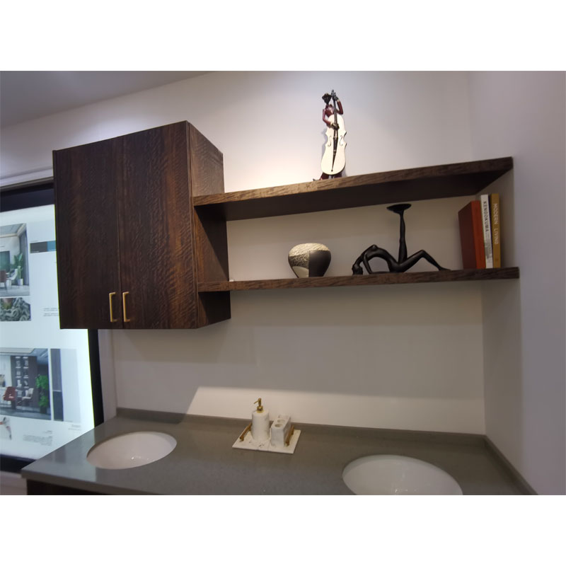 SINOAH strävar efter att förse dig med modern stil med bra förnuft. Denna moderna bruna matta färg gör utrymmet tyst och rent. Väggmonterad stil kan utnyttja utrymmet fullt ut. Och dörrens form och färg på bänkskivan kan anpassas.