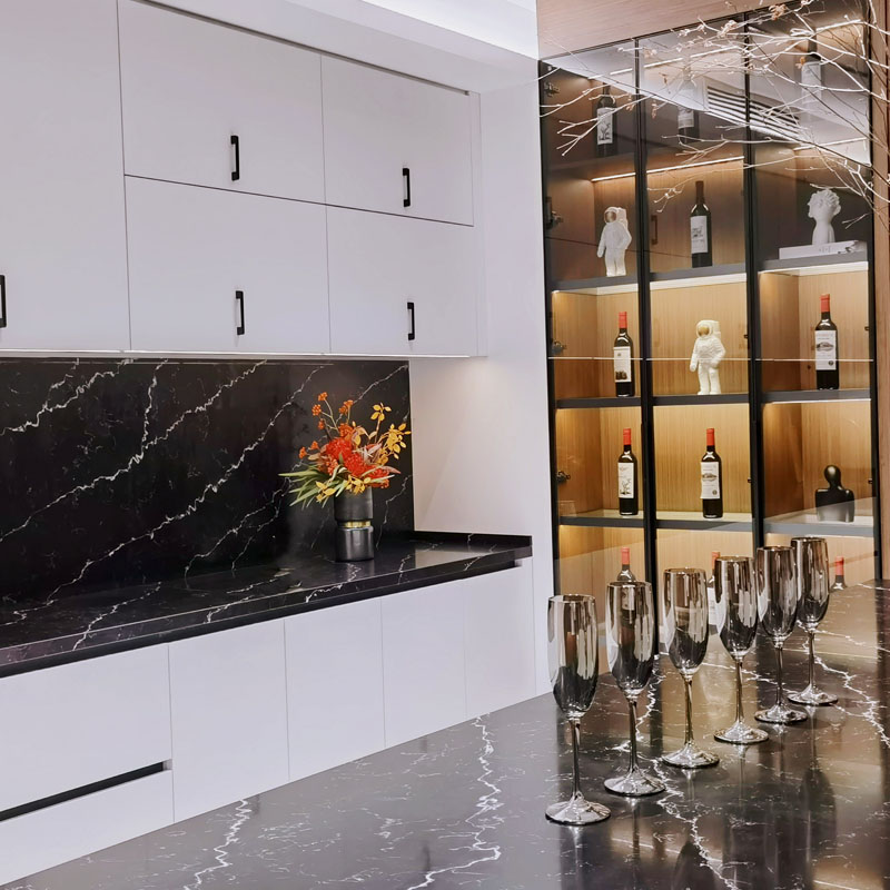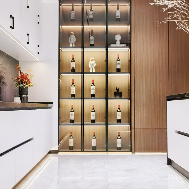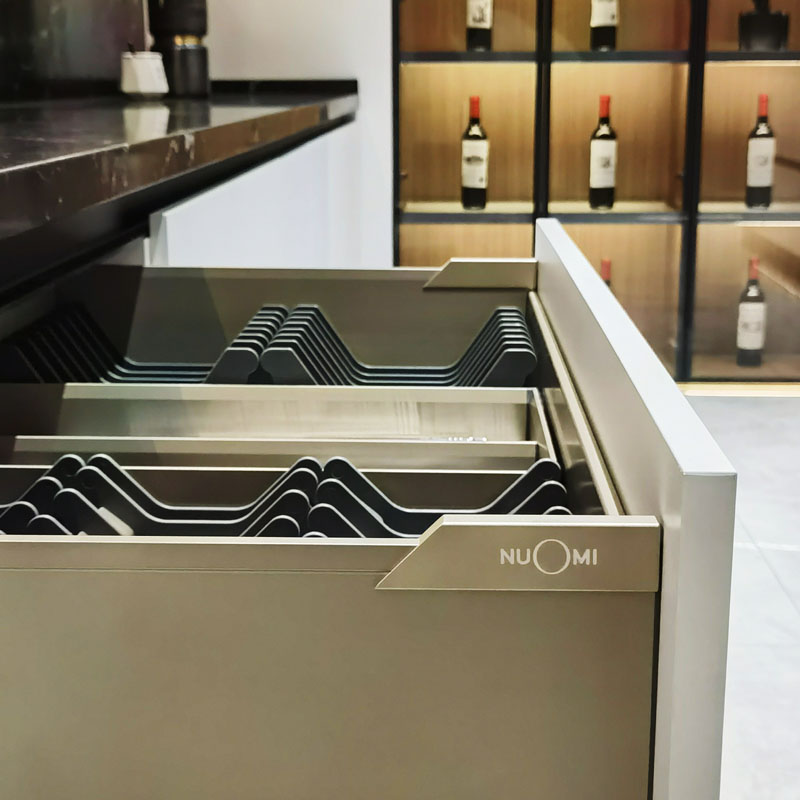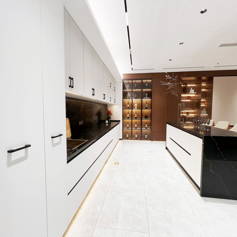 S: Den här serien använder designen av köksskåp med gratis handtag, för att vara enkelt att underhålla, vi har andra handtagsstilar tillgängliga, kontakta sales@sinoah.com.cn för att få katalogen.