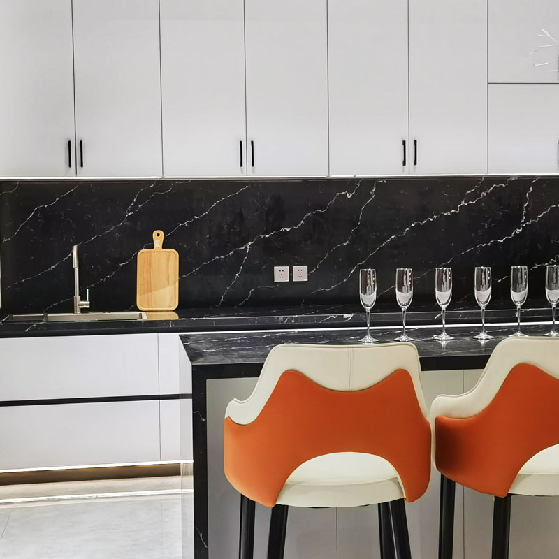 Denna serie av moderna vita köksskåp använder en miljövänlig ytbehandling som känns som huden. Grundmaterialet för paneler är gjorda av hög kvalitet av furu som råvara med den tyska importerade förstklassiga intelligenta automatiska produktionslinjen. Vi använder endast MDI (4-diphenylmethane diisocyanate) lim; fenylen var flyktig under högtemperaturproduktionsprocessen.