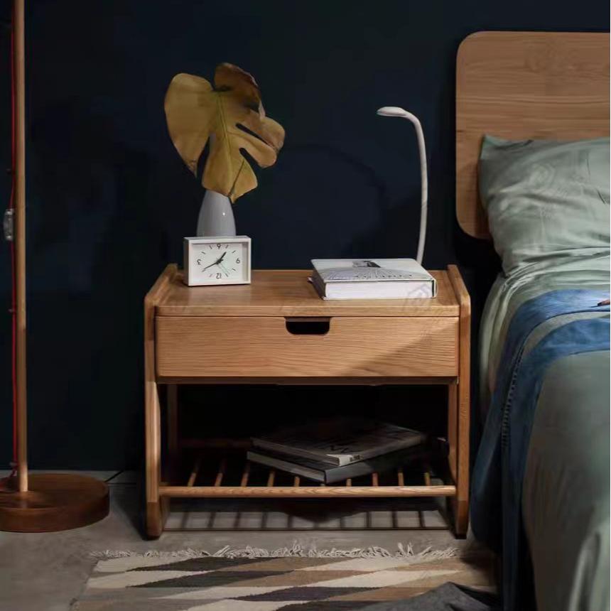 Material: Sinoah erbjuder ett val av tre premiummaterial för ditt sängbord: North American White Oak, Red Oak och Ash Wood. Varje typ av trä ger en unik charm till ditt sovrum med sitt eget distinkta spannmål och färg. White Oak är känd för sin hållbarhet och ljus, konsekvent färg, vilket gör det till ett mångsidigt val. Red Oak, med sina rika, varma toner och framstående kornmönster, ger en touch av rustik charm. Ash Wood, med dess raka korn och subtila färgvariationer, erbjuder en modern look.