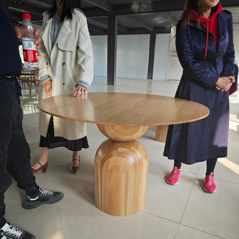 Sinoah är stolt över att avslöja vårt senaste mästerverk - en fantastisk rund matbord utformad från premium nordamerikansk vit ek. Det här stycket förkroppsligar elegans, hållbarhet och mångsidighet, vilket gör det till det perfekta tillskottet till alla matplatser.